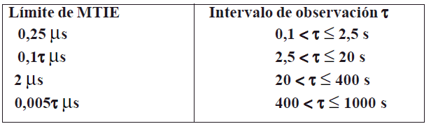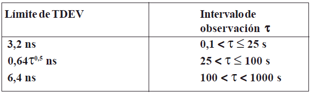 Cuando no hay fluctuación de fase a La entrada en la interfaz de sincronización, la fluctuación de fase intrínseca en las interfaces de salida STM-N óptica medida en un intervalo de 60 segundos no deberá exceder de los límites indicados en el Cuadro 6/UIT-T G.813.