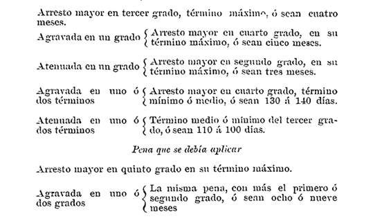 Los reos comprendidos en los incisos anteriores, sufrirán las penas de reprensión pública, arresto menor en segundo grado, y multa de cinco á veinticinco pesos. (Arts. 103, 104 y 105 Pn.)