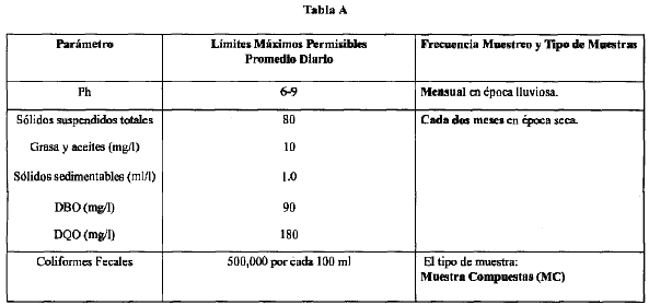 1.2 Realizar el monitoreo, control y seguimiento para las descargas, de los parámetros y con las frecuencias establecidas en la Tabla A del Artículo 7 del presente Decreto, debiendo entregar los resultados por escrito a MARENA en un término de veinte días hábiles después de finalizado cada monitoreo.