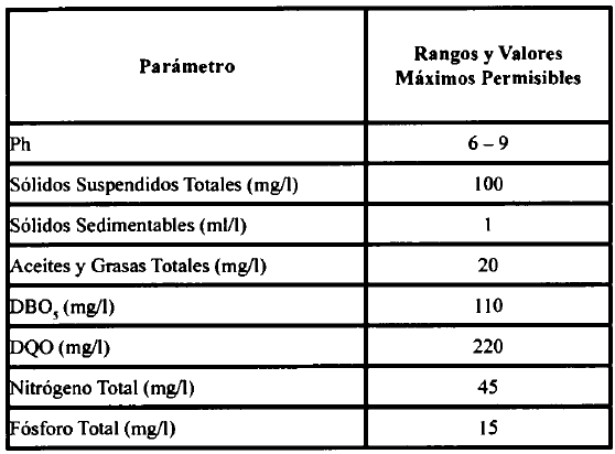 Artículo 65. Rangos y Valores máximos permisibles para los Vertidos de Aguas Residuales provenientes de la Crianza de Ganado Bovino en Establos. Los vertidos de aguas residuales provenientes de la Crianza de Ganado Bovino en Establos a nivel Industrial y de sitios de subastas que sean descargados a cuerpos receptores, deberán cumplir los rangos y valores máximos permisibles siguientes: